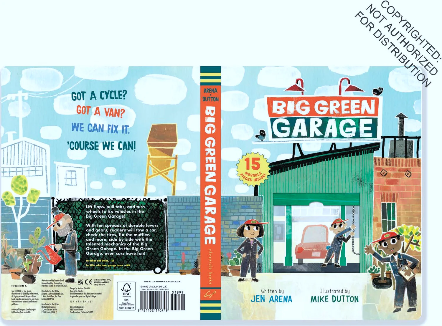 With ten spreads of durable levers and gears, readers will tow a car, check the tires, fix the muffler, and more, side by side with the talented mechanics of the Big Green Garage. In the Big Green Garage, even cars have fun! With rollicking, rhyming text and 15 push-and-pull tabs throughout, young readers will delight in this satisfying and interactive read-aloud.